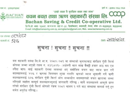 बागमती प्रदेश अन्तर्गत शाखा स्तरीय सम्मान पुरस्कारहरू शनिवार आयोजित विशेष कार्यक्रम बचन तथा ऋण सहकारी
